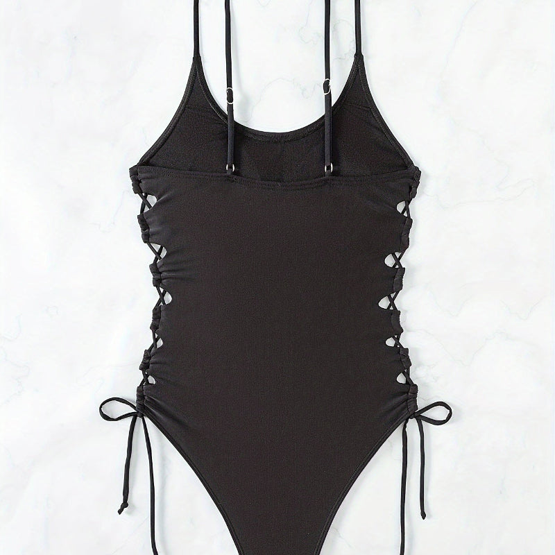 Maillot une pièce col rond, coupe sexy avec bretelles croisées et coussinets amovibles pour un maintien ajustable.
